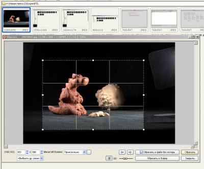 Первое действие, в котором часто нуждаются фотоснимки – это поворот на 90 0 . Сделать это можно с помощью соответствующих кнопочек на панели или через меню Правка-Поворот и в выпадающем меню выбрать нужный вариант. Преимущество второго способа в том, что появляются дополнительные возможности: поворот на произвольный угол (бывает очень полезна, если у Вас все здания на снимке похожи на Пизанскую башню, например), и зеркальные отражения по вертикали или горизонтали (почему зеркальное отражение обозвали переворотом, я не знаю, но слова из меню не выкинешь). Второй очень важный момент – это кадрирование, которое способно намного улучшить восприятие фотоснимка. Выберите фотографию, которая нуждается в кадрировании и нажмите клавишу Х (латинскую). Появится окошко, в котором и осуществляется кадрирование.